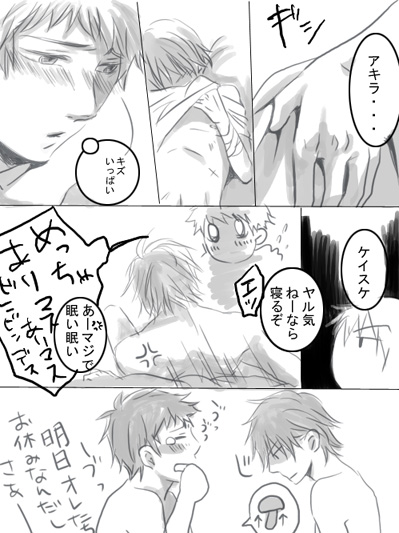 当初はアキラのキズだらけな体を見て変な興奮を起こすケイスケの漫画になる予定でした。